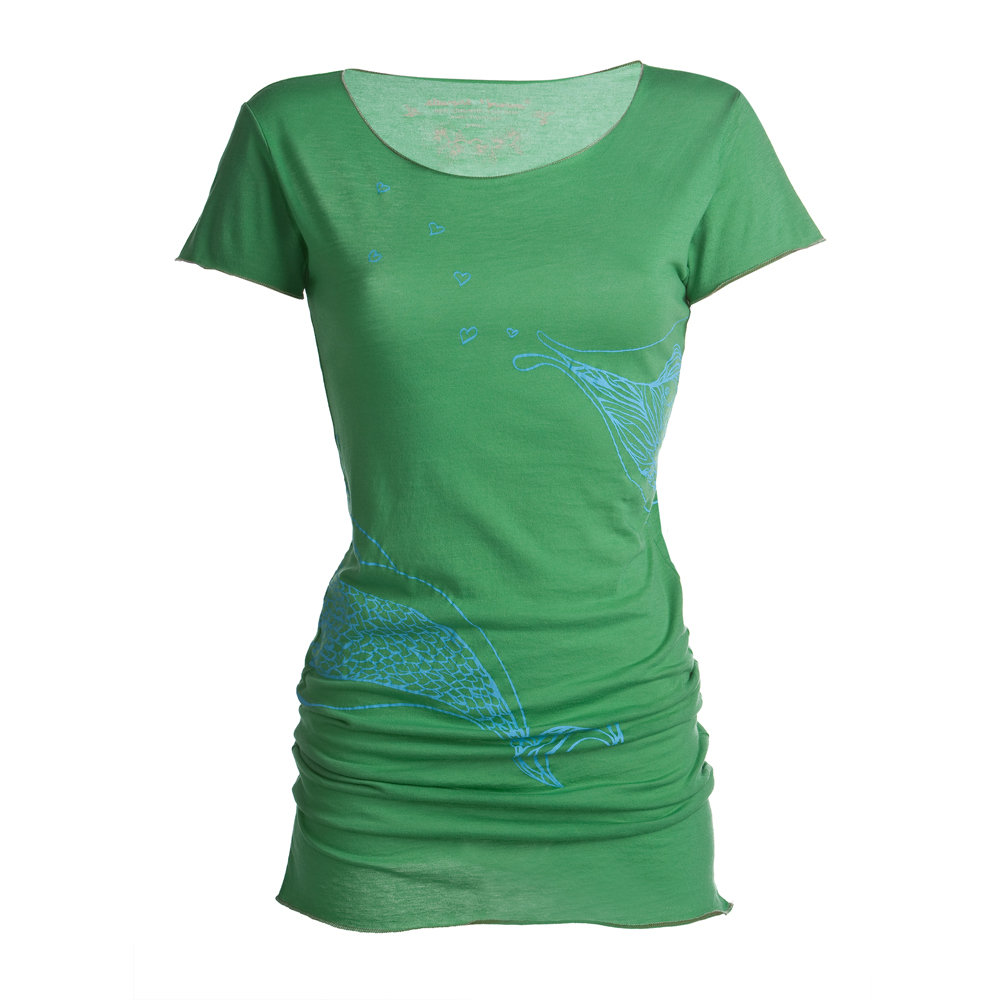 Kisser Fish Shirt, long shirt with short sleeves and colored printing that can be worn as a mini dress. Available in clover green and violet from the exclusive Stewart+Brown Organic Cotton Line. The finest Pima cotton consists of especially long fibres that guarantee a special high quality.